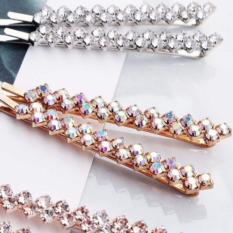• Package: You will get 4 pairs metal hair pins with the color of white golden diamond, white silver diamond, coloured diamond and black diamond, each one is studded with sparkling rhinestones.