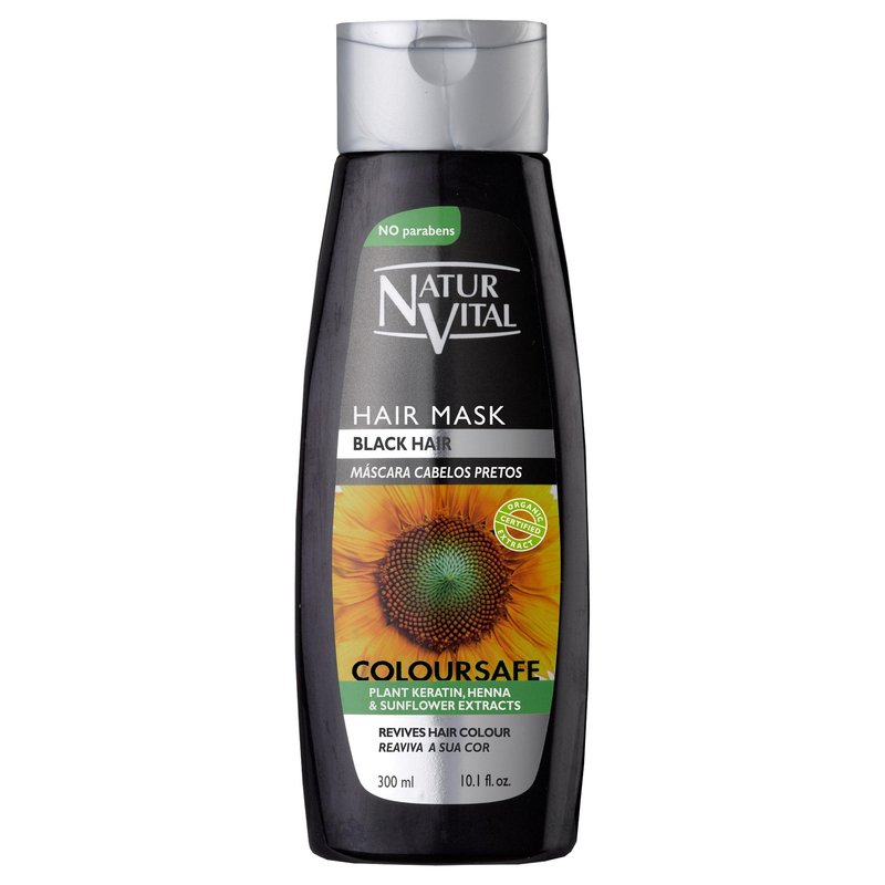 In just 5' the mask restructures, softens and leaves the hair with an intense black shine. It revives the hair's natural look. To maintain the color effect, we recommend using NaturVital Henna Shampoo.