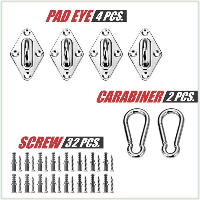 - ★ INCLUDES: Turnbuckle( 6") x 2pcs, Pad eye( 2.4") x 4pcs, Snap Hook( 2") x 1pcs, Screw x 16pcs, 12 ft cable wire rope x 4pcs.