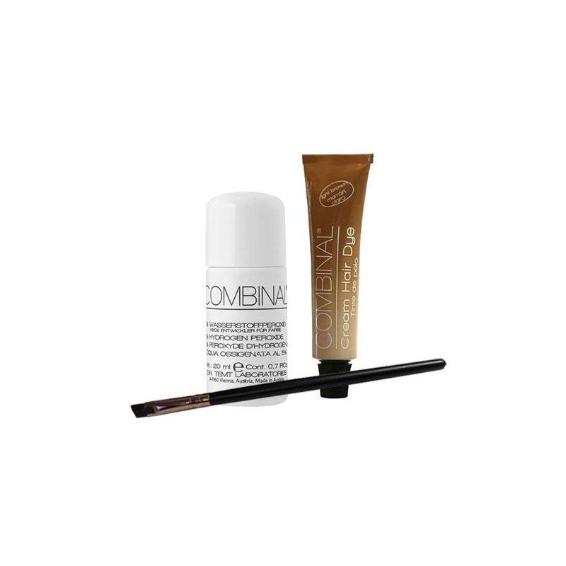 Combinal Cream Hair Dye (Light Brown) .5 oz with Brush & 5% Hydrogen Peroxide .7 oz
