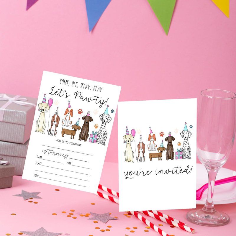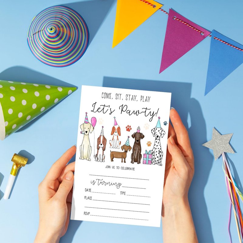 Come Sit Stay Play - Puppy Dog Theme Birthday Invite for Girls Boys Teen Friends, Cute Pet Birthday Party Invitations Card, 20 Invitations With Envelopes, Birthday Party Supplies & Decorations -004