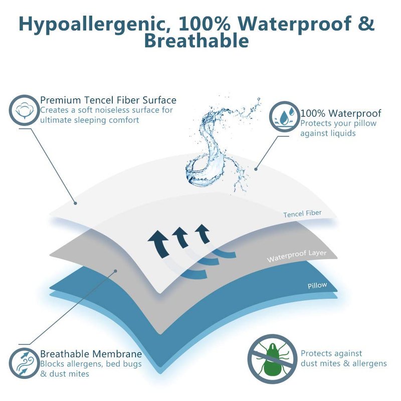 ComfiLife Pillow Protectors consist of premium tencel fiber surface and a waterproof breathable membrane that creases a soft and noiseless surface for a good night's sleep. Our pillow protectors are tested 100% waterproof so you can rest assured that your pillows are protected from accidents and fluids