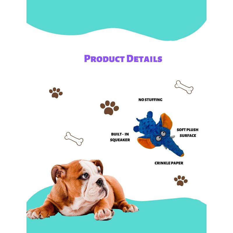 Comfych Dog Toy No Stuffing Plush Animal Toy, Squeeky Sound, Cute Design, Durable and Soft, Ideal for Pet Training and Playing, Blue
