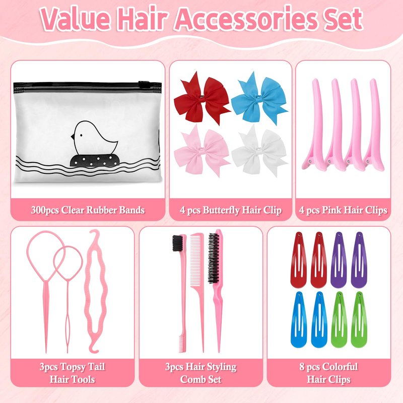 - 【🥰What You Will Get】:You'll receive 3000 clear rubber bands, 3 Topsy Tail Hair Tools, 3 Hair Styling Comb Sets, 2 Rubber Bands Cutters, 8 colorful Hair Clips, 4 Pink Hair Clips, and 4 Butterfly Hair Clips. This set of hair-tying tools will help you create beautiful and fashionable hairstyles.