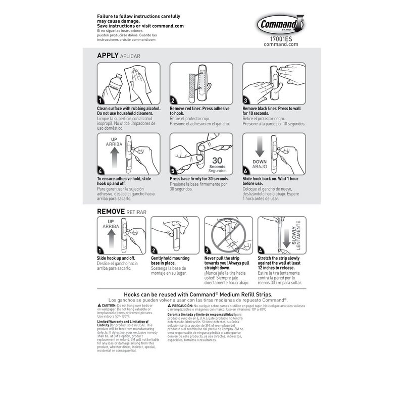 - EASY CLEAN REMOVAL: Lightly hold the top of the wall adhesive strips and pull straight down towards the floor to remove the 3M Hooks holding college dorm decor and prevent damage of walls and surfaces; reuse your hook again by purchasing refill strips