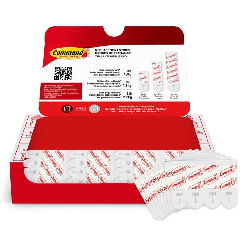 - RE-HANG HOOKS – Reorganize when inspiration strikes! Command Replacement Strips make it easy to hang and rehang all your Command indoor hooks, damage-free