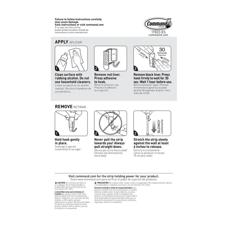 - ORGANIZE DAMAGE-FREE - Say goodbye to holes, marks, or sticky residue on your walls, doors, cabinets, or closets; Command Hooks by 3M are easy to use and help keep your walls looking beautiful