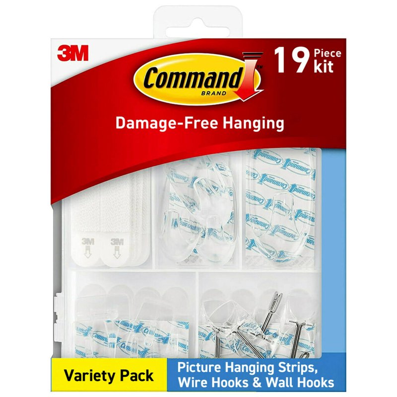 Command Variety Pack, Picture Hanging Strips, Wire Hooks and Wall Hooks, Damage Free Hanging Clear Variety Pack for Up to 19 Items, 1 Kit