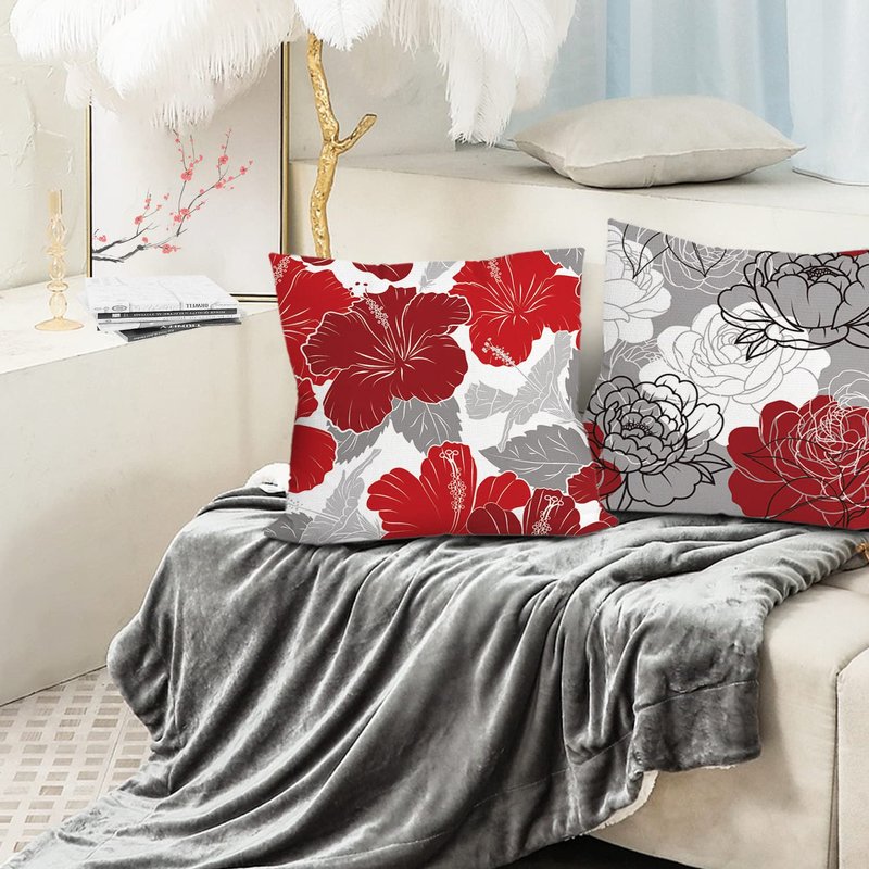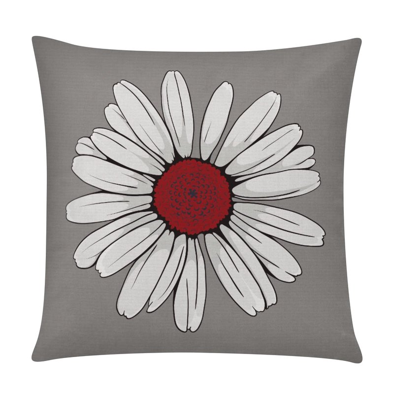 - Set of 6 decorative red grey daisy throw pillow covers made from cotton linen material