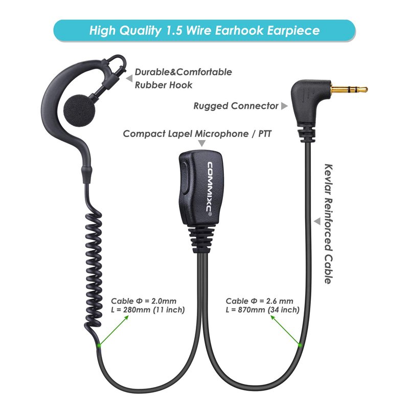 - CONVENIENT TO USE - The cord length between microphone and earpiece provides flexibility for movement. The PTT microphone can easily attach to your clothing with an accompanying clip. No set up is needed, just plug into your two-way radios and enjoy.