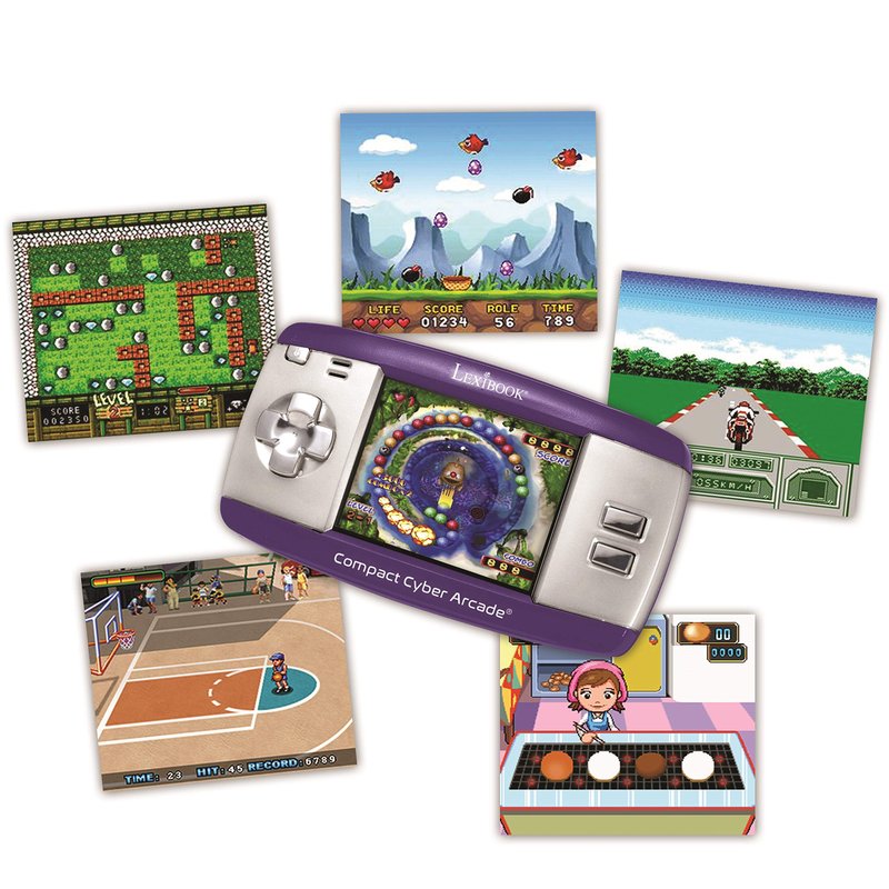 Compact Cyber Arcade Portable Gaming Console, 250 Games, LCD, Purple, JL2375PR