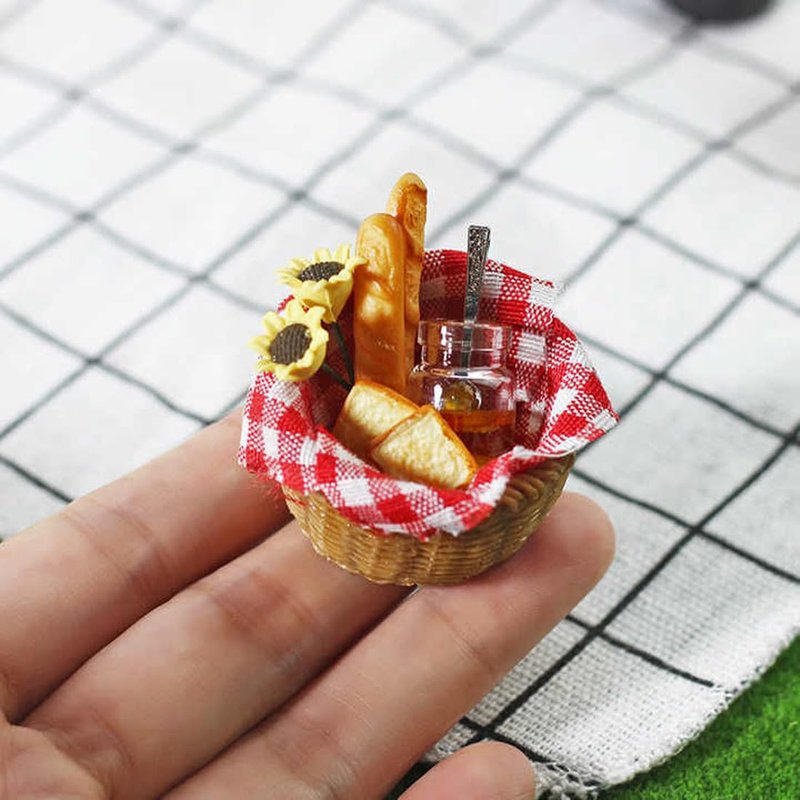 - 10P Miniature Set : Basket 1P, Baguette 2P, Bread 2P, Jam Bottle 1P, Spoon 1P, Flower 2P, Blanket 1P