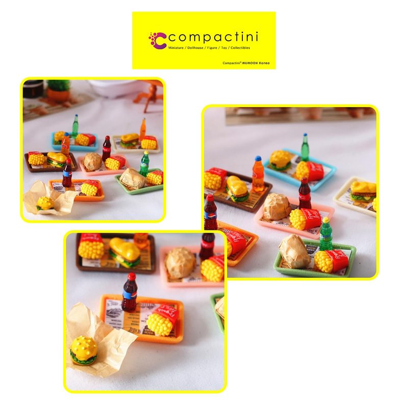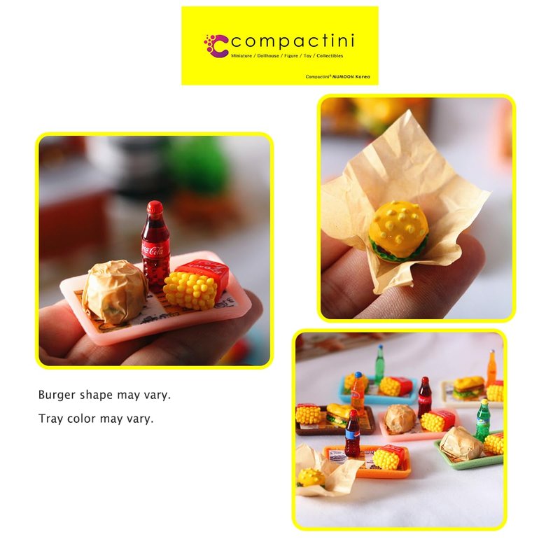 COMPACTINI Miniature Model 1:12 Scale Set Dollhouse Accessories Fast Food Miniature Hamburger Fried Chiken Miniature Soda Bottle Miniature (Burger Set Soda C)