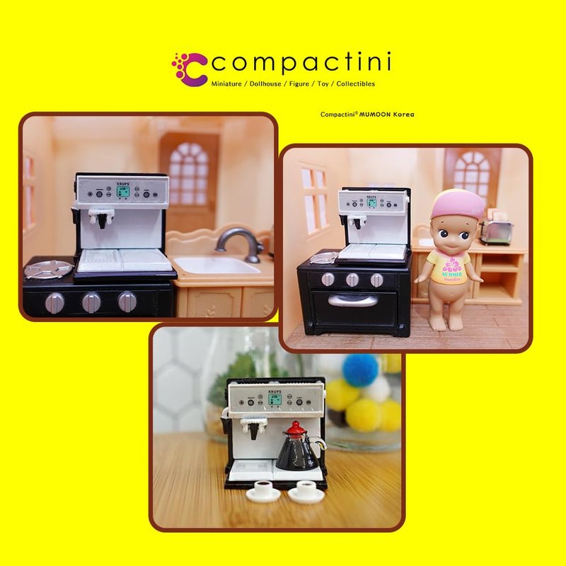 compactini Miniature Set 1:12 Scale Models Dollhouse Accessory Coffee Pot Cup Beverage Bottle Kettle (Coffee Machine Brown)