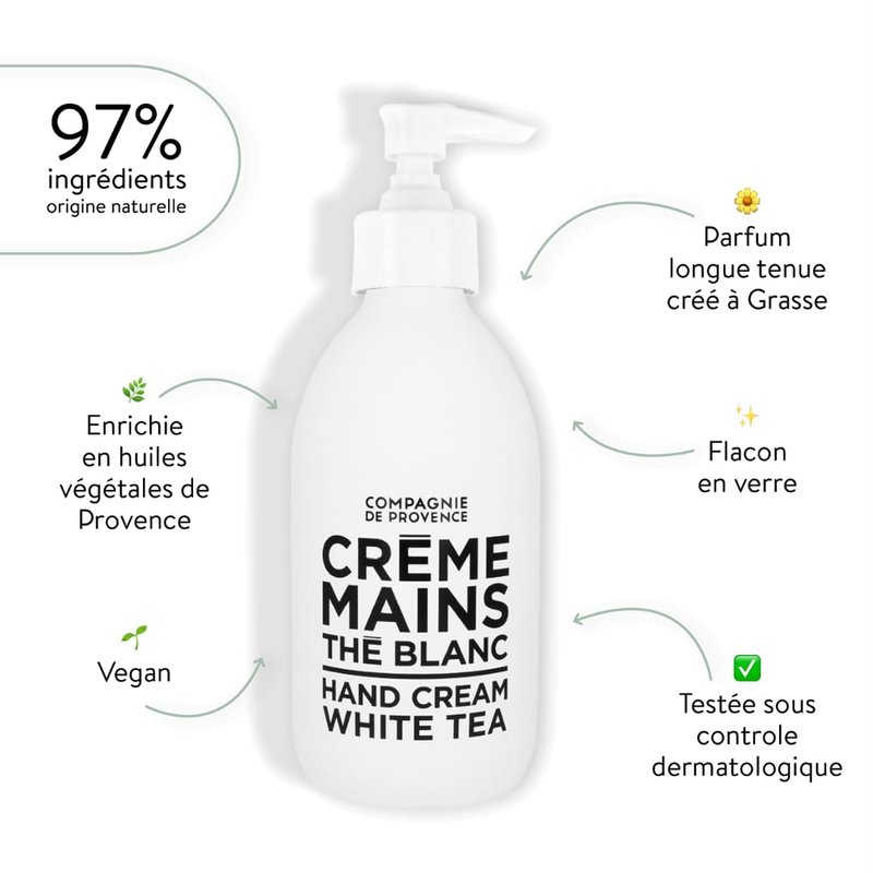 Compagnie de Provence Luxury Hand Cream - White Tea - 10 Fl Oz Glass Pump Bottle