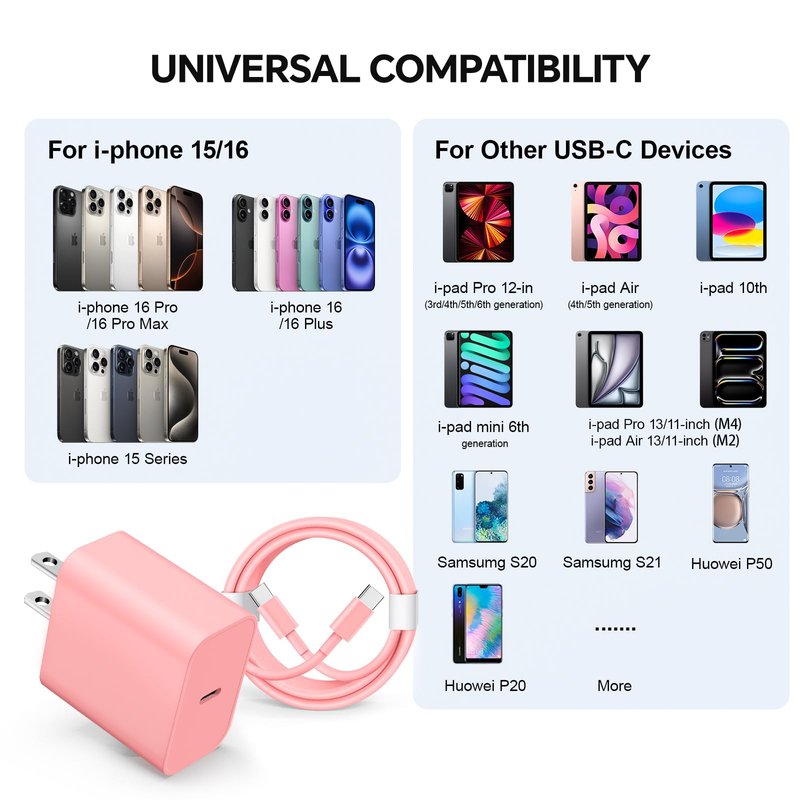 - Use This 20W USB C Wall Charger and 10/6-Feet 60W Quick Charger Cable To Charge Phone16/16 Plus/16 Pro/16 Pro Max, 15/15 Plus/15 Pro/15 Pro Max, 2021 Pad Mini 6th Generation, 2021/2020/2018 Pad Pro 12.9-Inch 5th Generation/4th Generation/3rd Generation, Pad Pro 11-Inch 3rd Generation/2nd Generation/1st Generation (2021/2020/2018), Pad Air 4th Generation (2020) Fast Charging