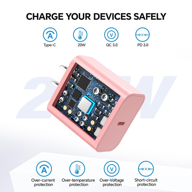 - 20W USB C Charge Block and Charging Cable Are Both Equipped With Smart Chips, Which Can Quickly Charge New Phone 15 Pro Max, Full Charge Your From 0% To 50% in Just 30 Mins, 3X Faster Than The Standard USB Charger