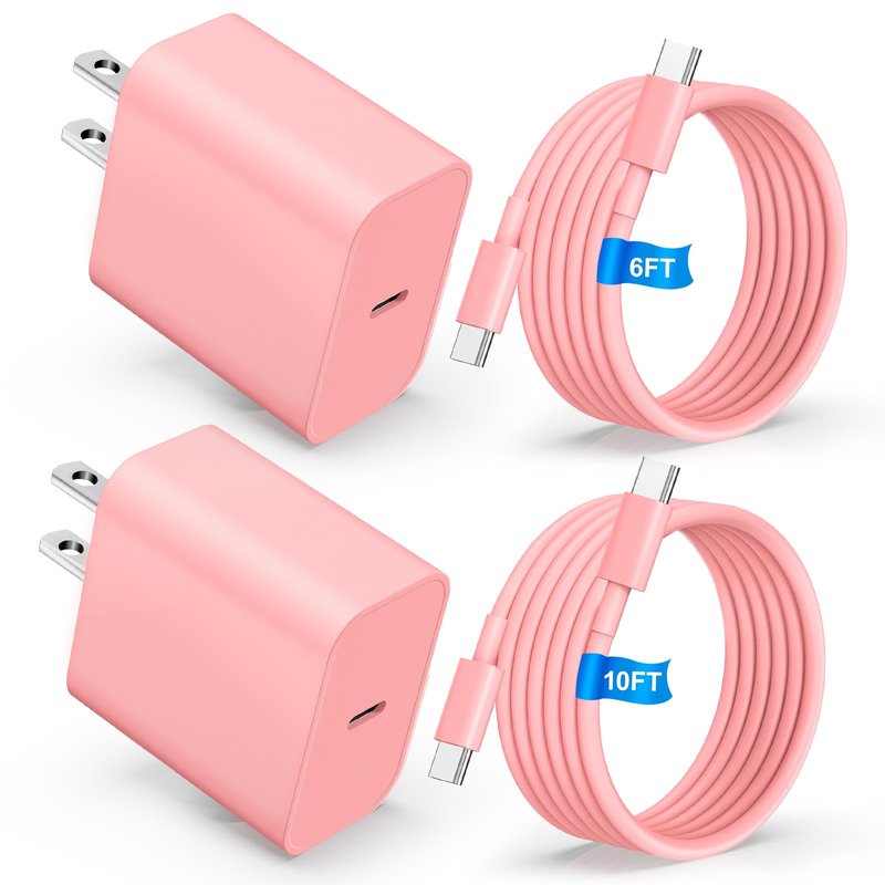 Compatible with iPhone 16/15 Charger, 20W Fast Charging Wall Charger Block Cubes with 6/10Ft USB C to USB C Cable Compatible with iPhone 16/Plus/Pro Max/15/Plus/Pro Max/iPad Pro Charger Pink 2Pack