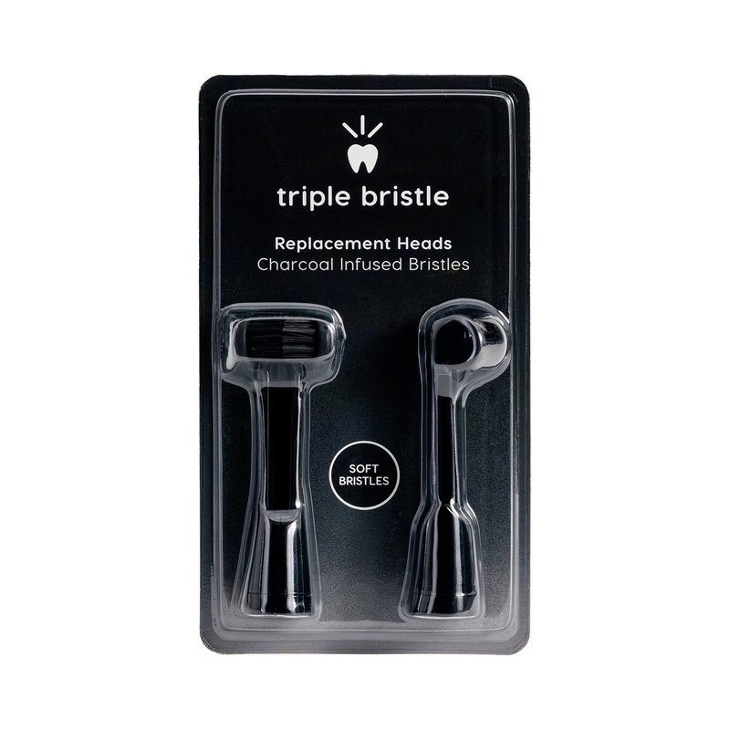 COMPATIBLE WITH THE TRIPLE BRISTLE MAX ONLY | Triple Bristle Max Replacement Brush Head Refills | Charcoal Infused | Innovative 3 Head Design | Compatible with Triple Bristle Max ONLY | 2 Pack (Black)