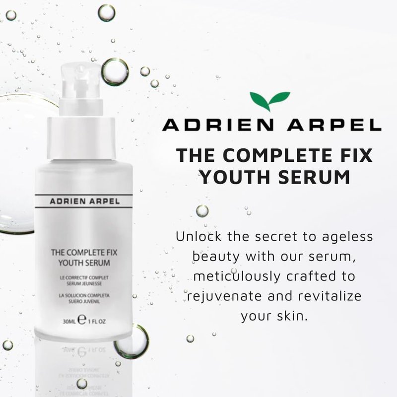Achieve youthful, radiant skin with Complete Fix Youth Serum by Adrien Arpel. This anti-aging powerhouse combines retinol to boost collagen and reduce wrinkles, hyaluronic acid to lock in moisture, and citric acid to shield skin from impurities. Packed with vitamins C and E, plus antioxidant-rich daisy, green tea, red marine algae, and bearberry extracts, it tightens and soothes while reducing redness. Infused with aloe vera for calming hydration, this lightweight serum is suitable for all skin types and absorbs quickly for a refreshed, rejuvenated complexion.