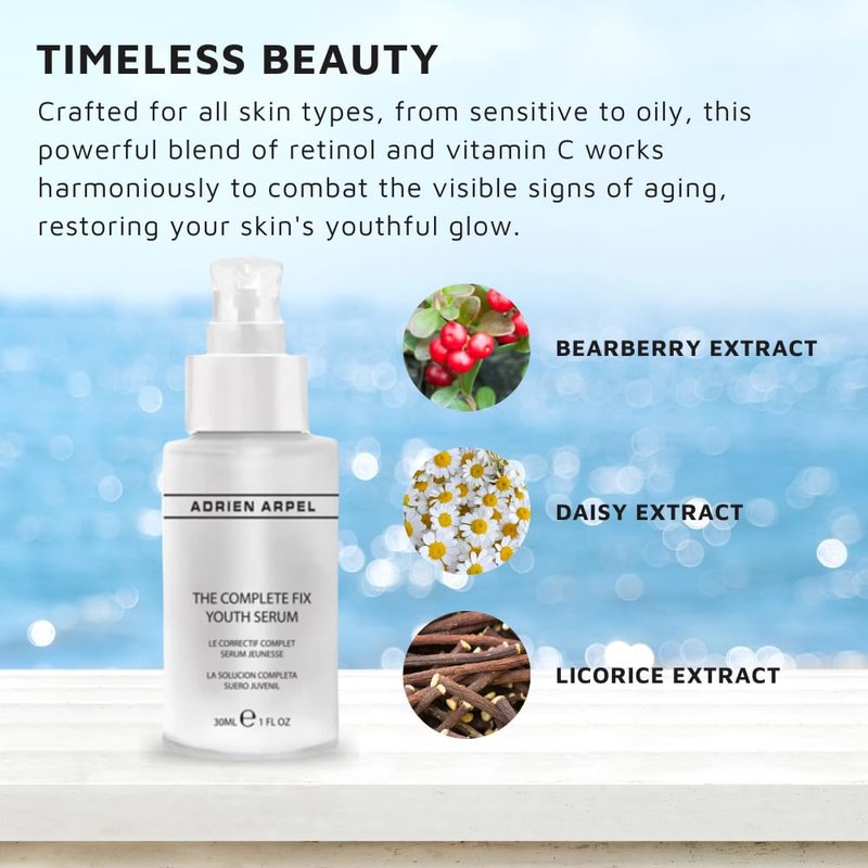 Complete Fix Youth Serum by Adrian Arpel, Anti-Aging Facial Skincare Reduces Appearance of Wrinkles, with Retinol and Vitamin C