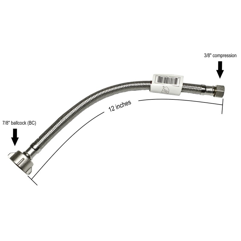 QTY 1: 12" long x 7/8" ballcock brass nut stainless steel braided toilet water supply line