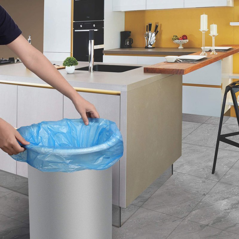 - [Muti-purpose Waste Basket Liners]:This trash can liner is designed with elegant blue color, looks clean and refreshing,perfect for Kitchen,Office,Backyard,Bathroom,Bedroom,LivingRoom,Baby Diapers,Car,Cleaning Pets’ Litter and Trash Recycling.