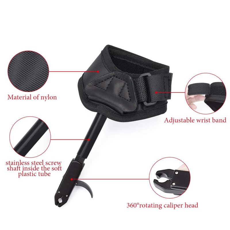 Archery compound bows releases consists of a durable nylon wrist strap and 360-degree rotating caliper.