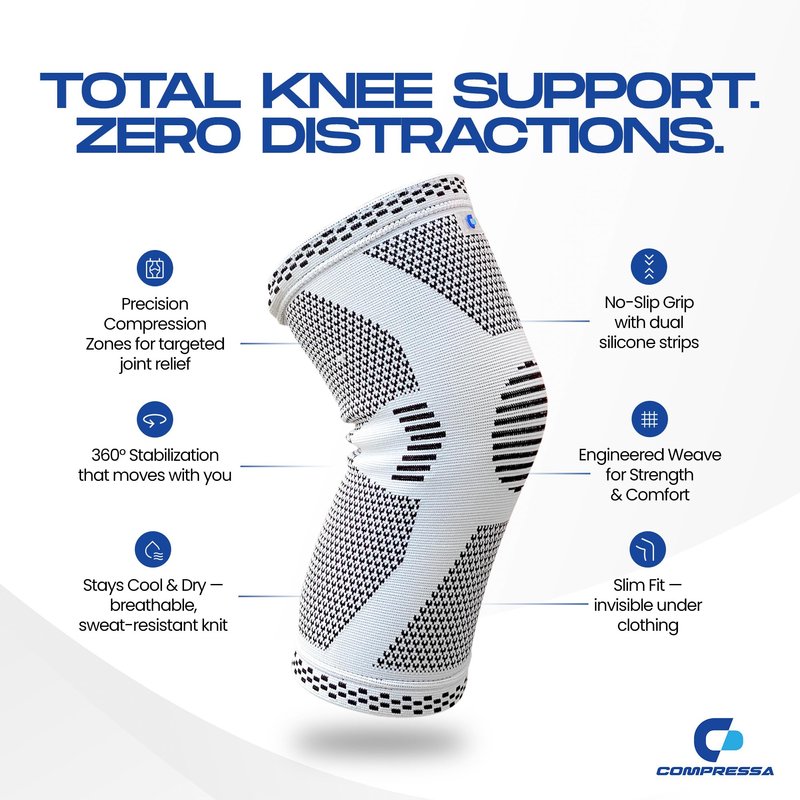 Compressa Knee Sleeve for Women & Men (Regular) - Non-Slip Compression Support for Joint Pain, Muscle Recovery, Arthritis, and Injury Relief