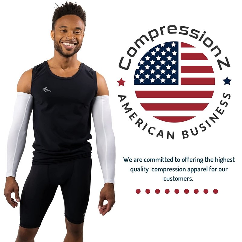 CompressionZ Compression Arm Sleeves for Men & Women UV Protection (White, XL)