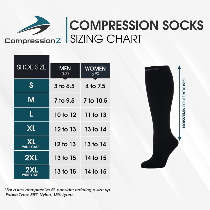 CompressionZ Compression Socks For Men & Women - 30 40 mmHG Graduated Medical Compression - Travel, Edema - Swelling in Feet & Legs - M, Black