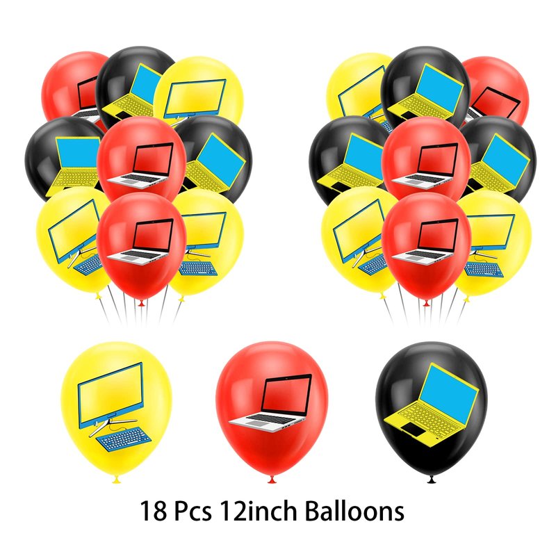 - Material: Computer theme birthday banner and cake decorations are made of premium cardboard, balloons are made of latex.Due to the fact that balloons are newly produced and may have a unique latex odor, please remove the balloons from the package 1-2 days in advance and completely place them in the air, which will be much better.