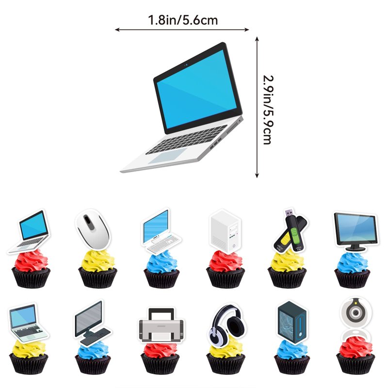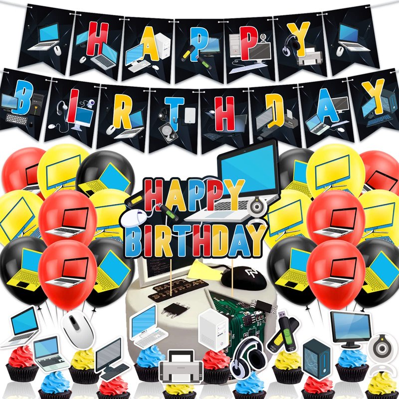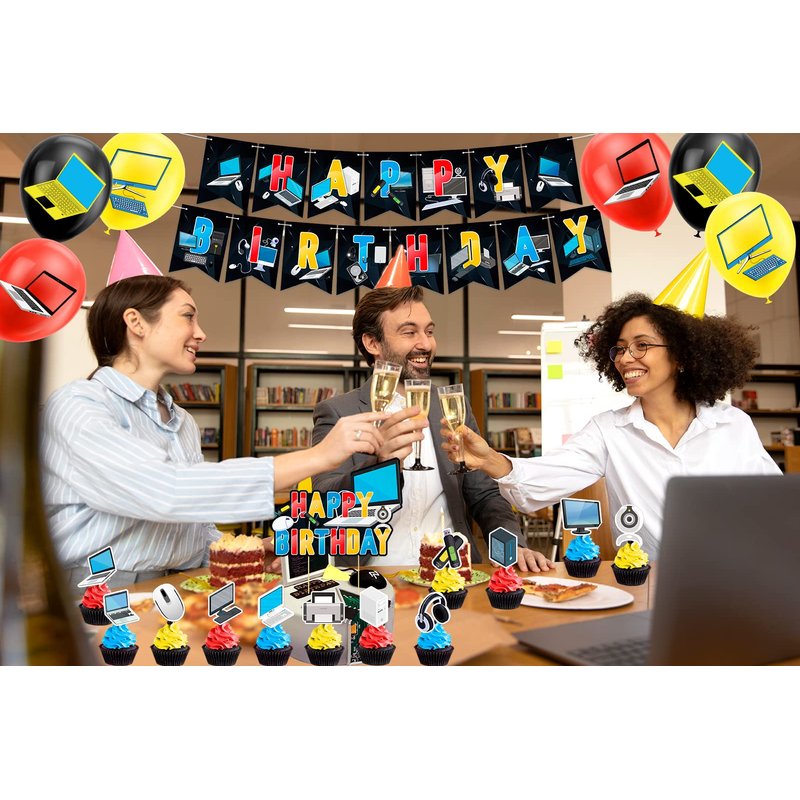 - Package Includes: 1* Computer HAPPY BIRTHDAY banner, 1* Computer HAPPY BIRTHDAY cake topper, 12* computer cupcake toppers,18* balloons.Sufficient quantity to meet your decoration needs.