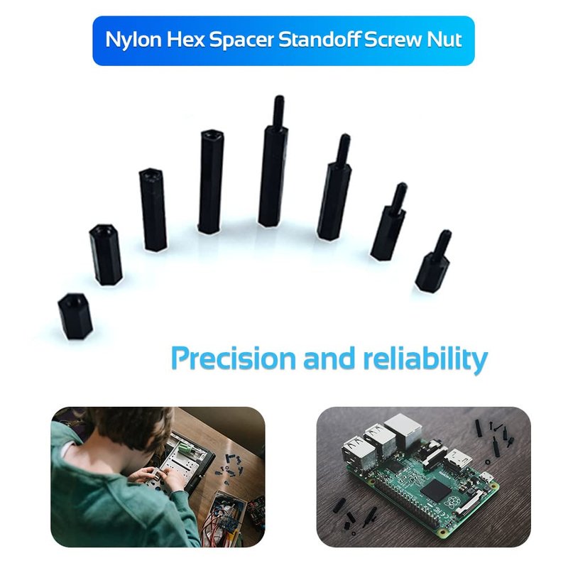- 🛠Easy to Use: The kit features a user-friendly design with male-female hex spacers, standoffs, screws, and nuts that can be easily assembled and disassembled with a hex key or a screwdriver, providing a secure and reliable connection. The hex design allows for a secure grip and precise tightening and loosening, ensuring that the spacers, standoffs, screws, and nuts are firmly in place.