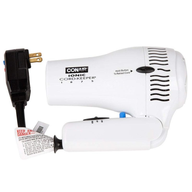 Make your guests feel at home in your hotel, motel, or extended-stay facility with the Conair 169WIW white cord keeper hair dryer. A convenient, push button cord keeper retractable cord frees up counter space when not in use. The Conair 169WIW white cord keeper 1875 watt hair dryer also features 2 heat and 2 speed settings to meet the demands of all of your guests.