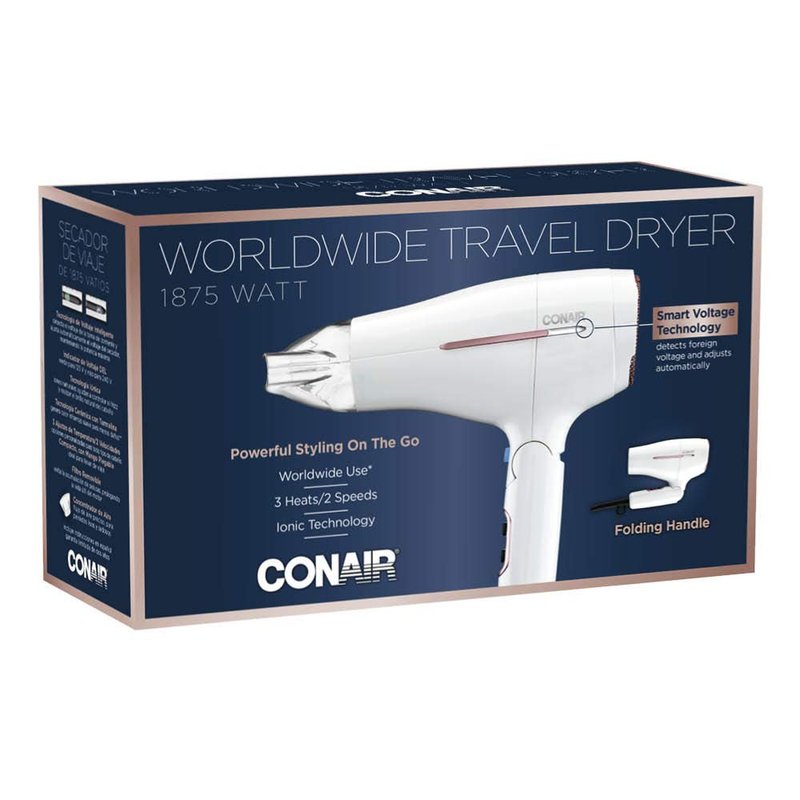 Conair Hair Dryer, Worldwide Travel Hair Dryer with Smart Voltage Technology and Folding Handle, Includes Concentrator