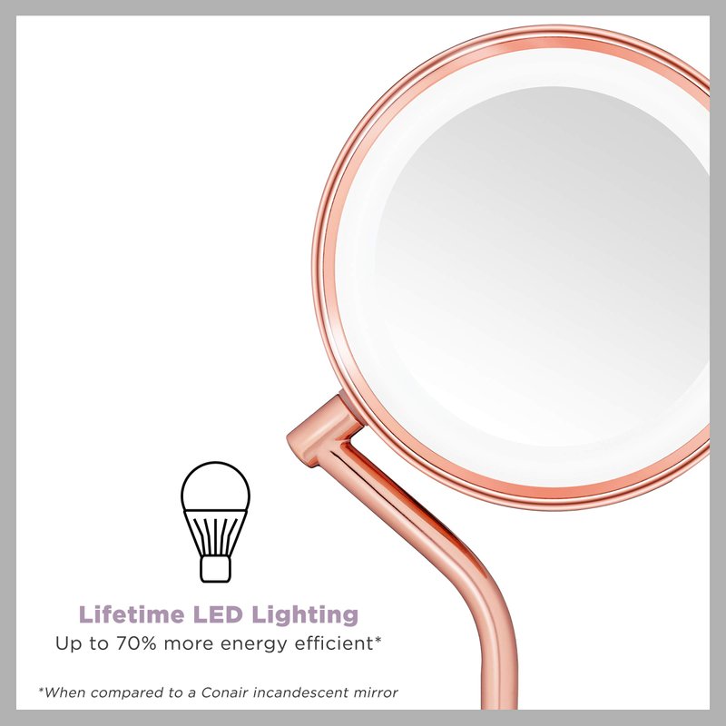 Conair Lighted Makeup-Mirror with Magnification, LED Vanity-Mirror, 1X/5X Magnifying-Mirror, Double Sided-Mirror, Operated in-Battery Rose Gold