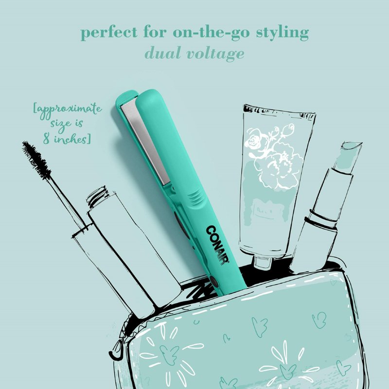 Conair Mini 1/2-inch Ceramic Flat Iron; Perfect for On-The-Go Styling, Turquoise