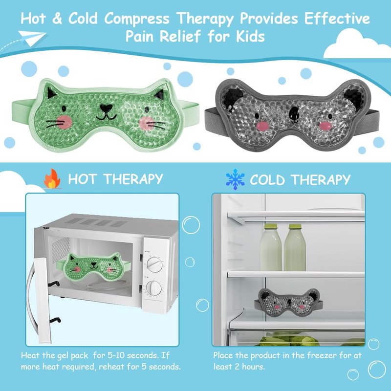 - ❤[More pain relief functions] - In addition to relieving eye discomfort, the CONBELLA boo boo ice packs for kids is also suitable for children's forehead, head, wrists, knees, and ankles. As an analgesic, the ice packs for kids have anti-inflammatory, cooling, and improved blood circulation effects, making it an ideal choice for children to relieve fever, lumps, bruises, swelling, minor cuts and burns,muscle soreness and stiffness, and sinusitis.