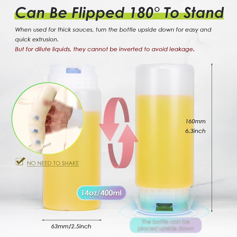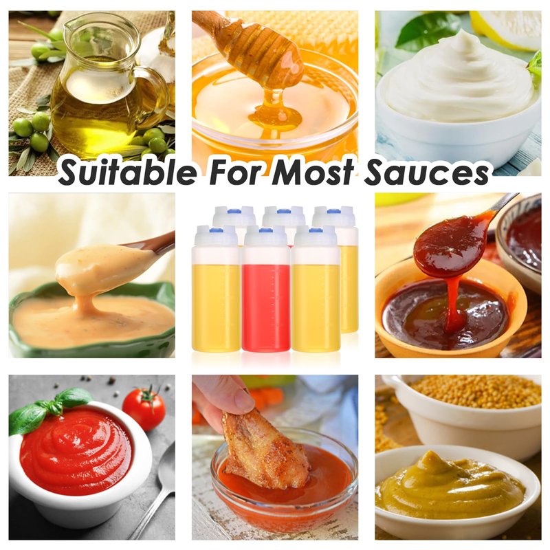 Condiment Squeeze Bottles for Ketchup Hot Sauce Liquids Oil with Caps for Condensed Milk and Mustard Salad Dressing Dispenser Clear Plastic Bottles Dressing Container PE BPA-free (14 oz 6 Pack(400ml))