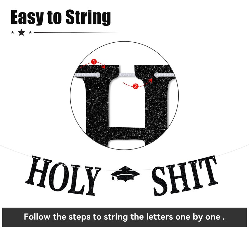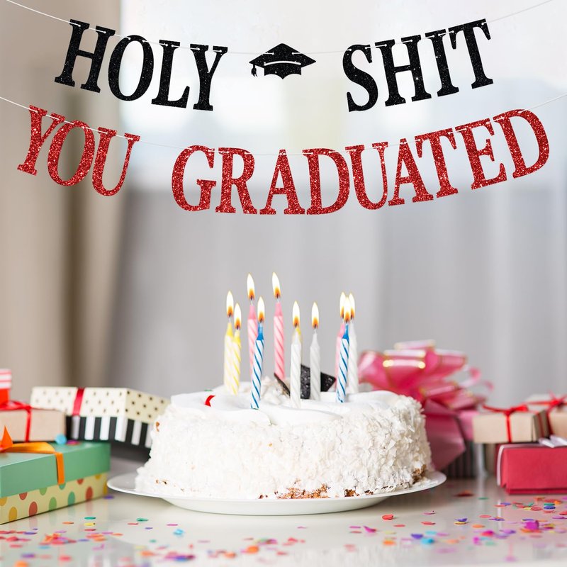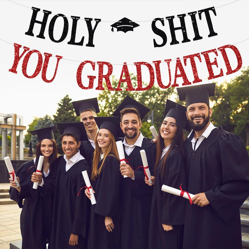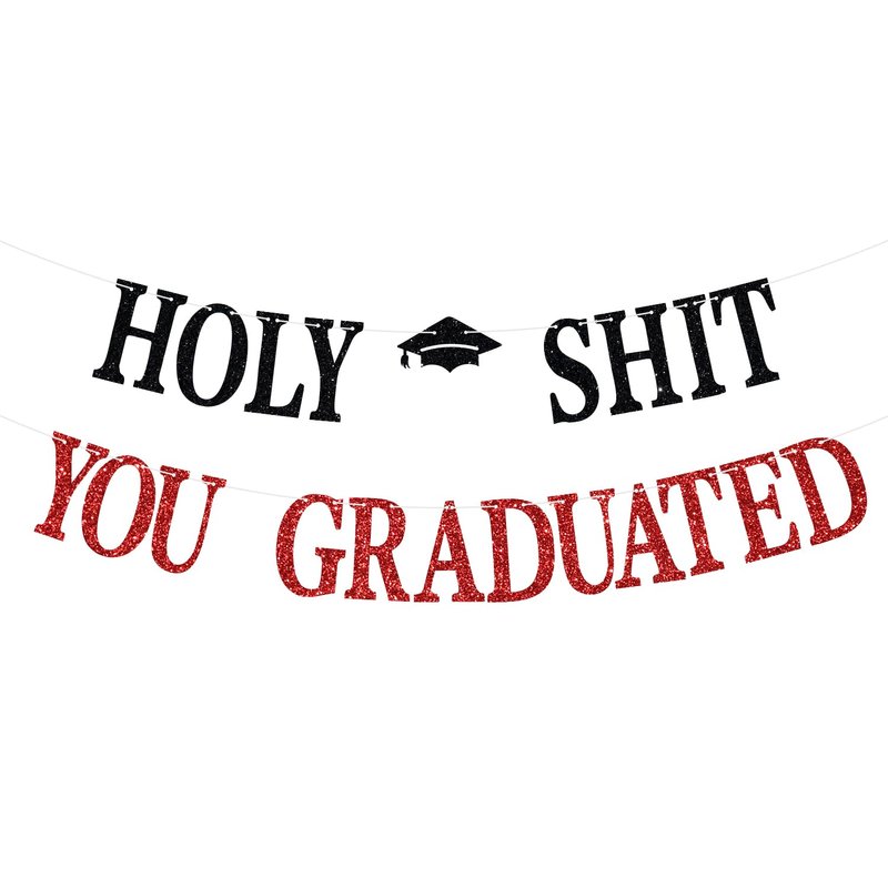 - 🐾【Package Contents】: Includes 1 black and red glitter banner with "Holy Shit You Graduated" text, adding a shiny and stylish touch to your party.