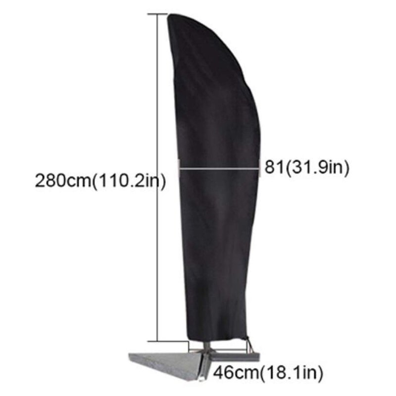 - Patio Umbrella Cover: Height 280cm/110inch, Dimension: 30cm/12inch (top), 81cm/32inch (middle), 46cm/18inch (bottom). Fits for outdoor umbrella in size 9 to 13 ft. In order satisfied your needs, please check the style and size carefully before purchasing it.
