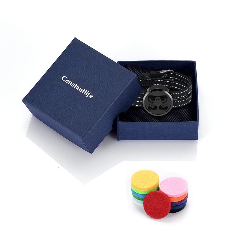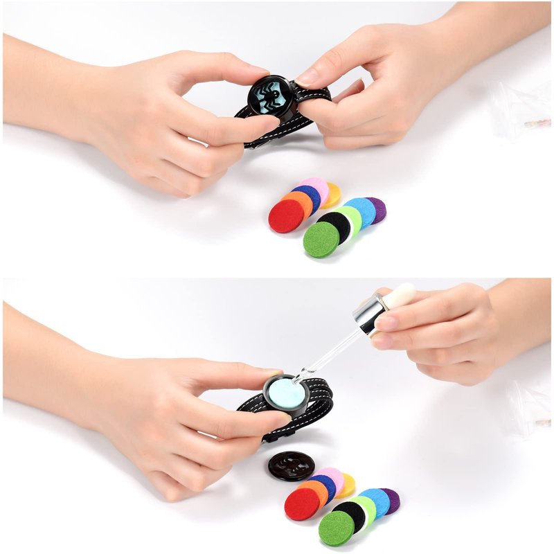 - 3)【Packaging Includes】1 * essential oil diffuser bracelet, 12 * refill felt pads, 1 * blue brand box. (This pads is random in color)