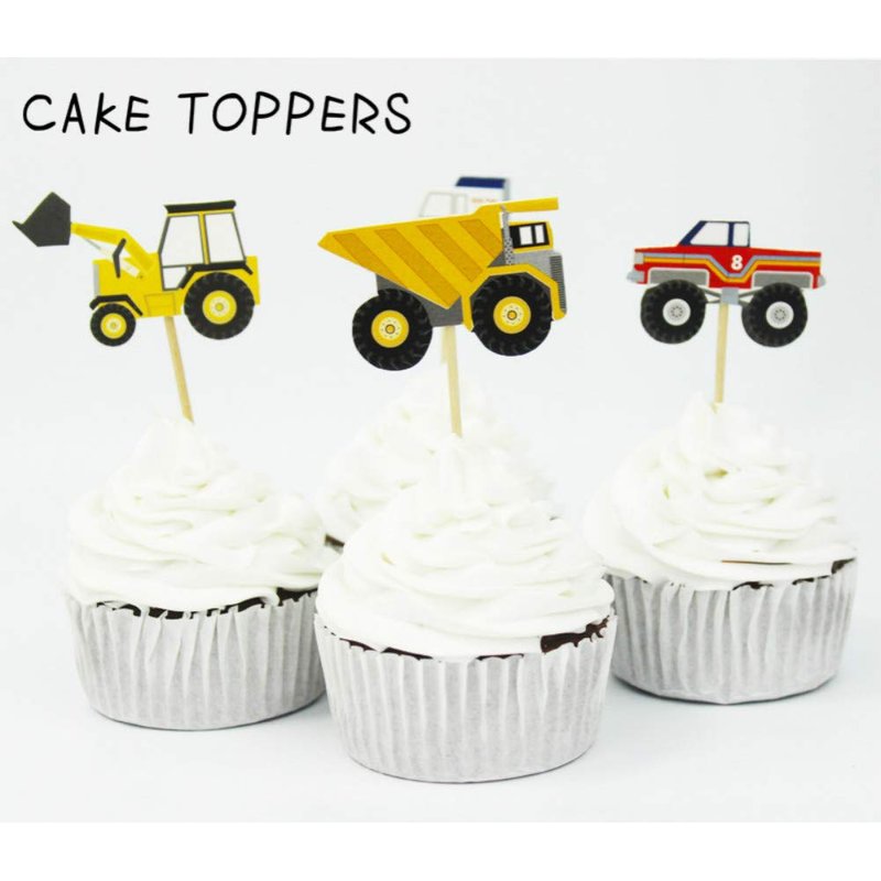 - PACKAGE INCLUDED: 24pcs vehicle cake topper; 8pcs party traffic signs cutouts (7 inches each); 1 roll caution party tape (84 foot long); 1 pack construction happy birthday banner; 1 pack vehicle banner (excavator, bulldozer, blender and truck included); 15pcs latex balloons (5 yellow, 5 black and 5 orange); 3pcs balloon glues, total 51pcs FIGEPO