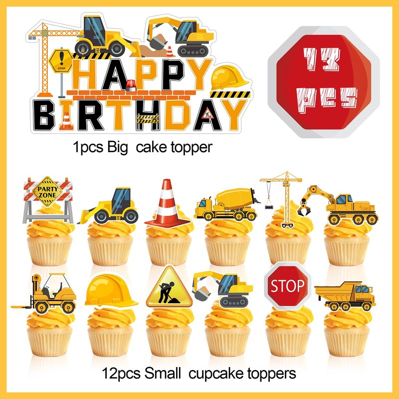 - Construction Cake Topper Pack: This construction cake decorations set contains 1 large construction birthday cake topper and 12 construction cupcake toppers, they feature many different building patterns, which can add more fun to your construction theme party.
