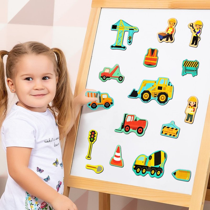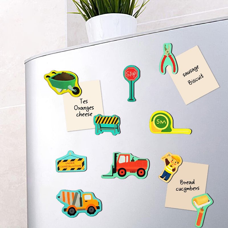 - Rich construction site scene and various shapes of construction vehicles and tools refrigerator magnets provide hours of fun for the kids to use their imagination and role play