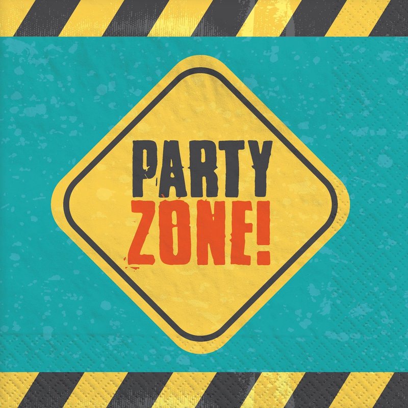 Construction Themed Beverage Napkins | 5" x 5" | Multicolor | Pack of 16