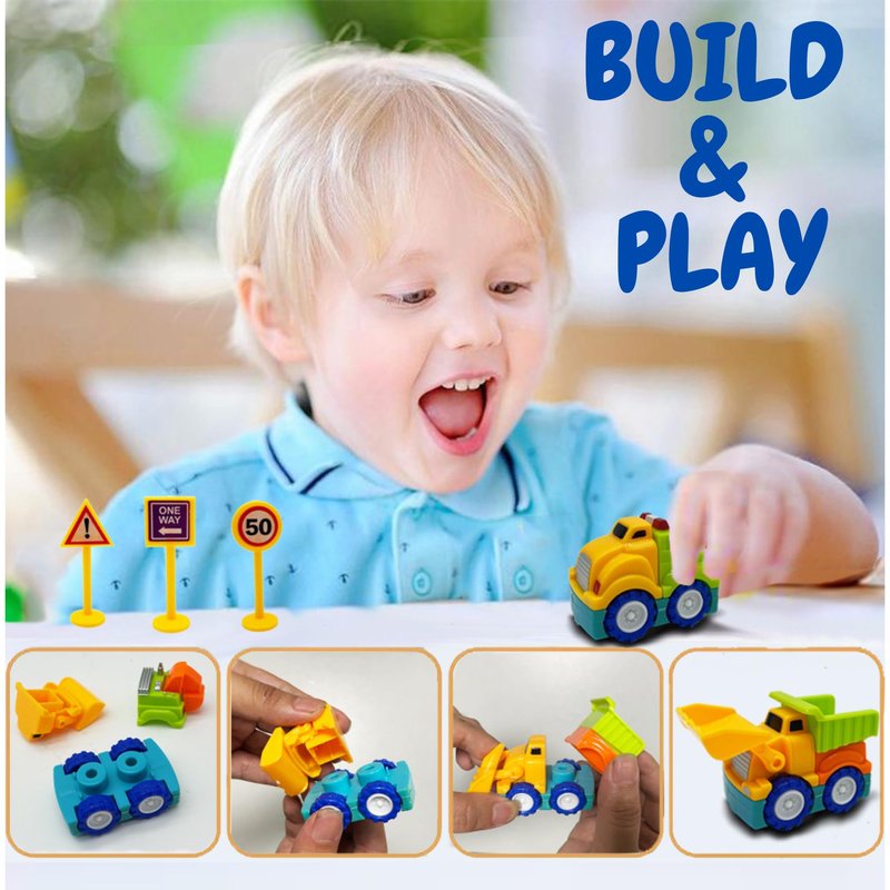 - ✅ Build & Play - Fueling creativity, the set features a unique build & play design. Kids can assemble and disassemble the trucks with ease, exploring various construction scenarios and creating their own imaginative stories.