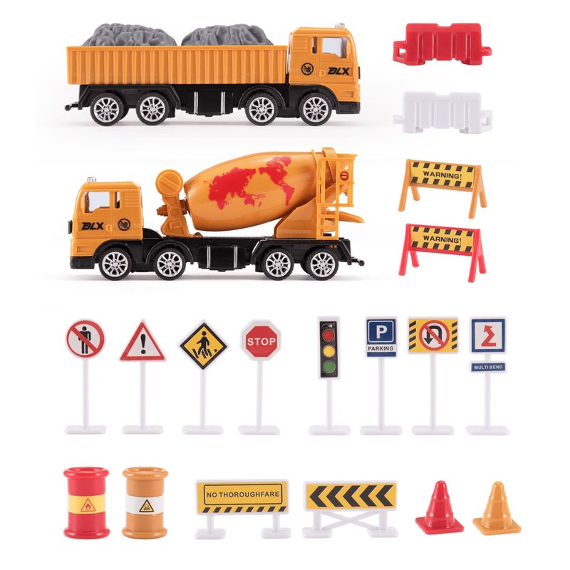 - 👷 Construction Vehicles Set - This toy truck set for kids aged 3-5 includes a dump truck and a cement mixer, accompanied by an array of accessories such as road barriers and traffic signs, creating a realistic construction site experience.