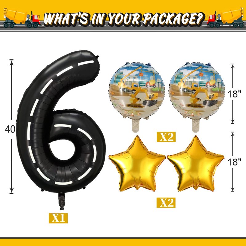 - 💕【Wide Application】These constuction 6th birthday decoration balloons are perfect for constuction theme parties, constuction children's birthday party, baby shower party, anniversary party and so on. The cool constuction balloon kit is perfect for your boy's birthday party as a single decoration, as part of a balloon bouquet or a mini balloon garland above a dessert table or entryway, a balloon banner, a table runner, and more.
